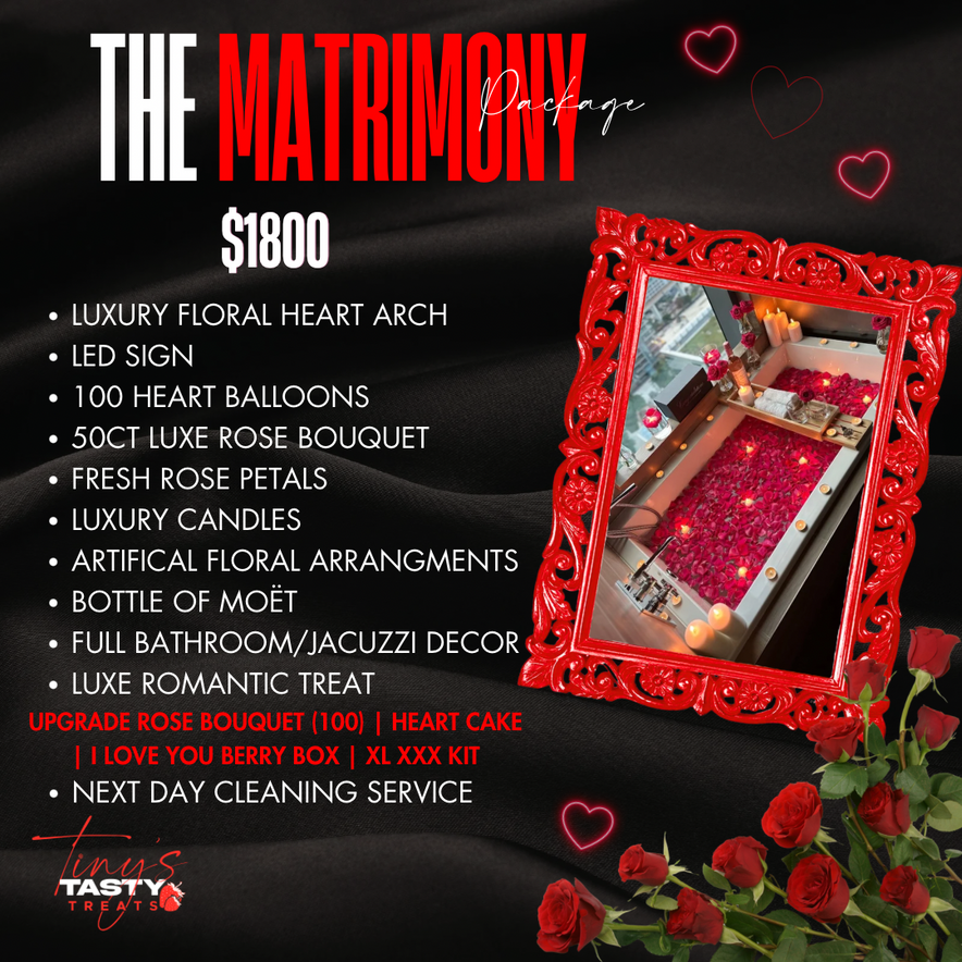For Valentine's weekend (February 6th-15th), Tiny's Tasty Treats will offer decorating services throughout parts of Florida. Booking for Valentine's ends January 30th. If booking after the deadline, rush fee will be applied. Bookings are not confirmed until contract has been reviewed and signed as well as 50% nonrefundable retainer fee has been made. Tiny's Tasty Treats does not book or reserve hotel rooms/Airbnbs/etc., nor do we check in for clients. Only exception is an Airbnb that offers self-check in.